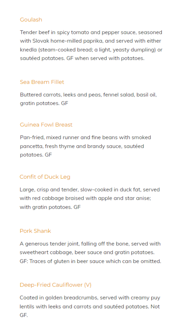 Please use the form opposite to order your meal from the menu below.